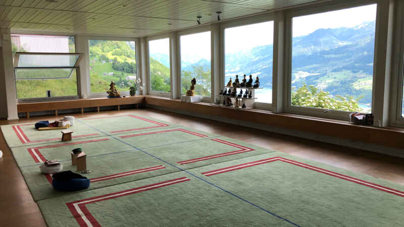 Wir verfügen über zwei «Gompas» (Meditationsräume) für die gemeinsame oder individuelle Meditation. Es gibt auch die Möglichkeit, bei der Stupa oder an unseren Meditationsplätzen im Wald zu meditieren. In der grossen Gompa finden am Wochenende die Vorträge und Kurse statt.
